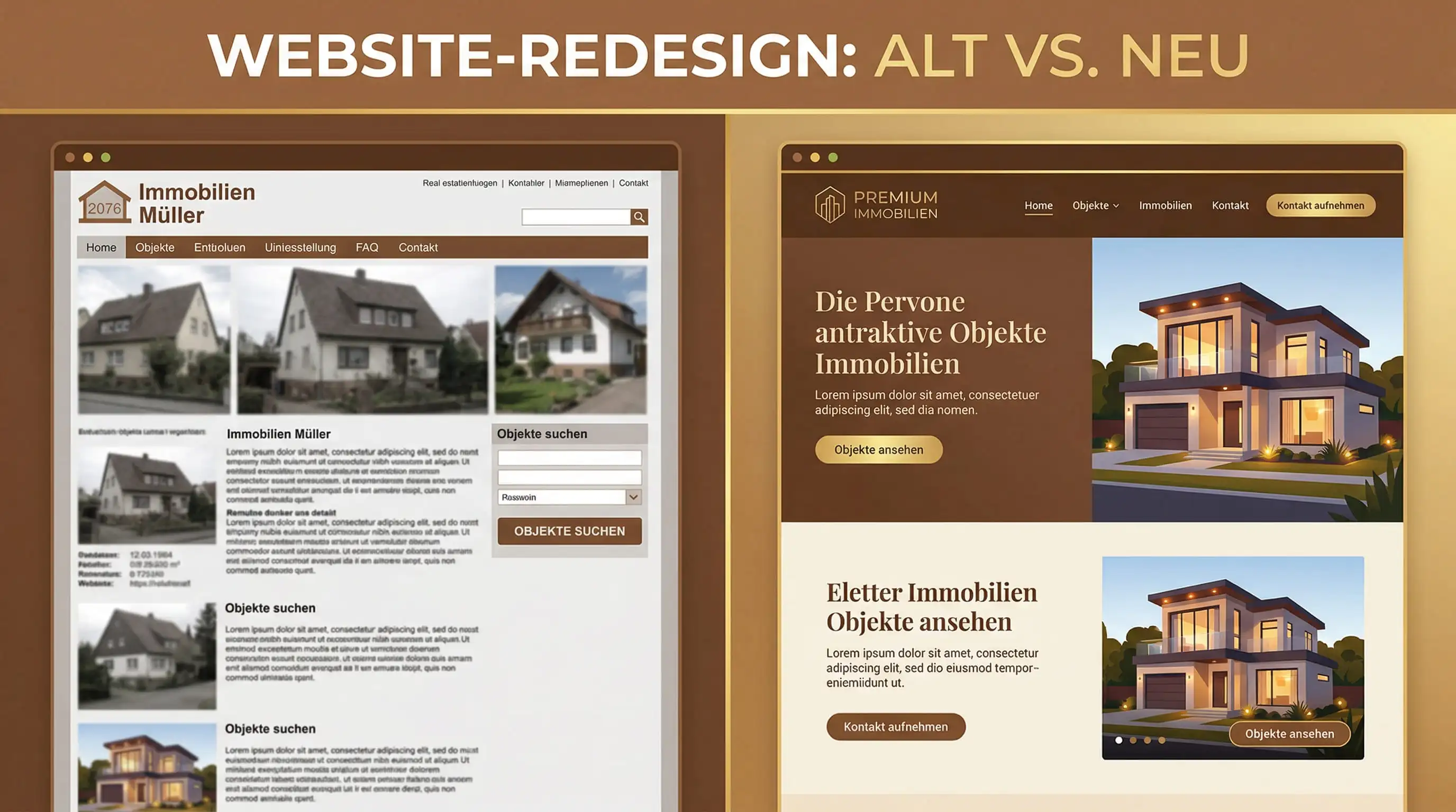 Vergleich einer modernen und einer veralteten Makler-Website nebeneinander